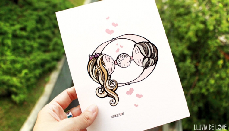 Así nace este trabajo titulado "La evolución del amor". Es una serie de tres láminas ilustradas que representan el amor a través de un beso. Aunque como siempre, si en lugar de láminas prefieres otro artículo, también se puede aplicar, indicando cual de las tres te gusta más: beso (1), embarazo (2) o bebé (3). Las puedes adquirir desde el menú láminas.